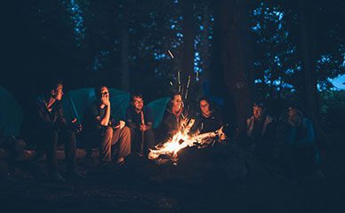 Fox Den is ideal for families and large groups (up to 14 people). With easy trail access and stunning high-altitude scenery, this site turns any weekend into a real adventure. This site comes with 3 luxury bell tents. It also features a combination of tree tents & hammocks; including our multi-level tree house. It's located right next to flush toilets/showers and is the ideal setting for special events. A fully equipped glamping kitchen, crackling fire pit, and a canopy of stars await.